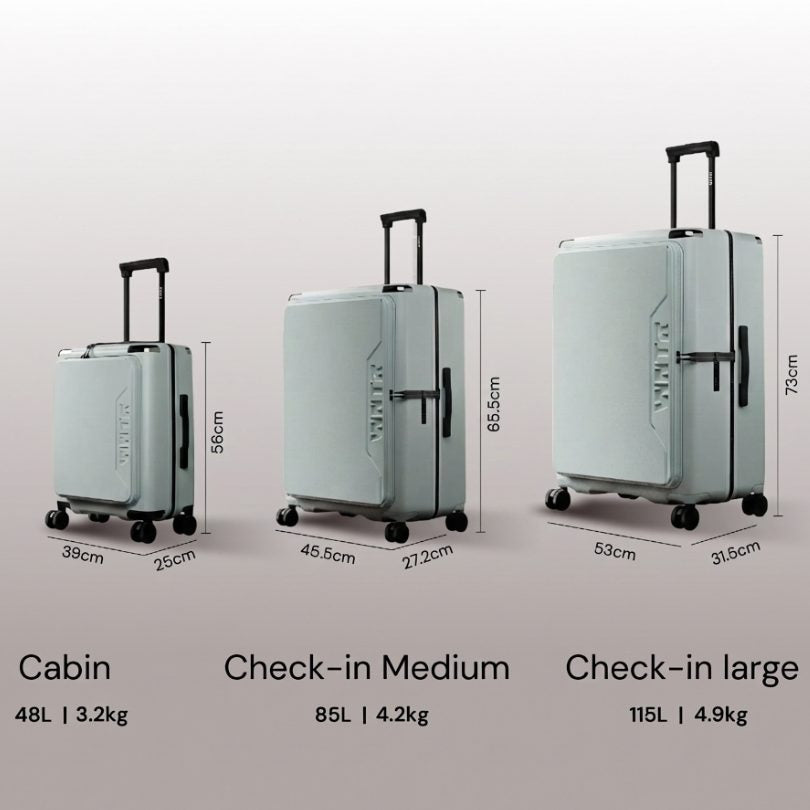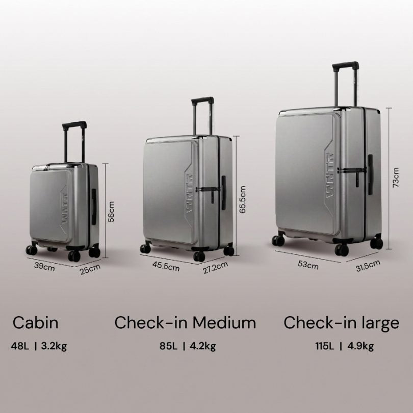 Our patented dual-mode design lets you choose: keep it in the suitcase mode for normal travel, or transform it into a vertical trunk for up to 15% extra capacity. Revolutionary front door access means you reach everything without unpacking the bag completely. Built to aerospace standards, with total security for peace of mind.